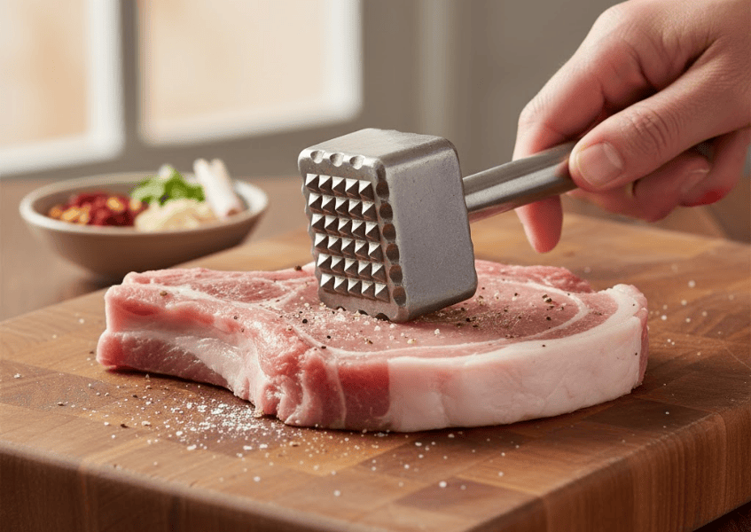 - Sườn cốt lết: Chọn miếng sườn tươi, có màu hồng nhạt, độ dày khoảng 1.5–2 cm. Nếu miếng quá dày, nên đập dẹt bớt để thịt nhanh chín và mềm hơn.