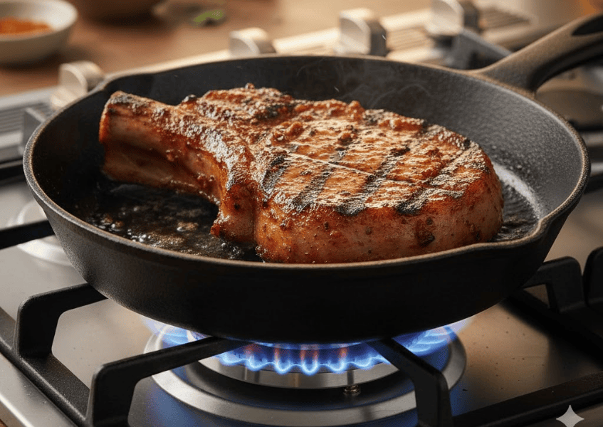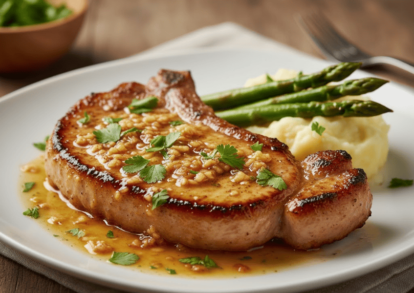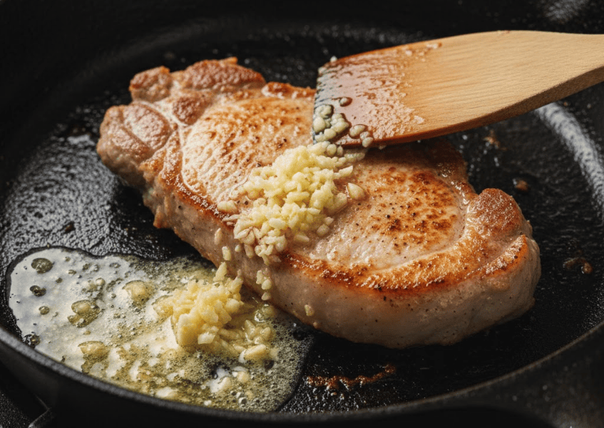 Sườn cốt lết áp chảo bơ tỏi, thịt mềm, cạnh giòn, thơm lừng