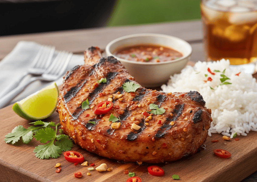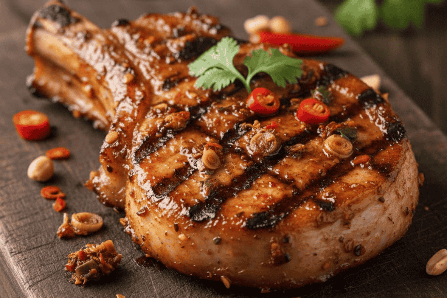 Sườn cốt lết nướng sa tế, mềm thấm, thơm lừng vị sa tế cay nồng