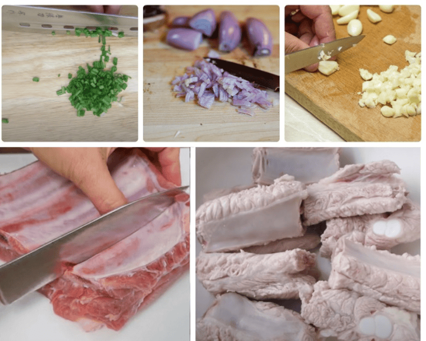 - Rửa sạch sườn, chặt thành miếng vừa ăn.