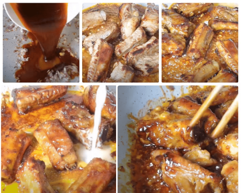 - Rim 5 phút cho nước sốt sánh lại, thấm đều từng miếng sườn.