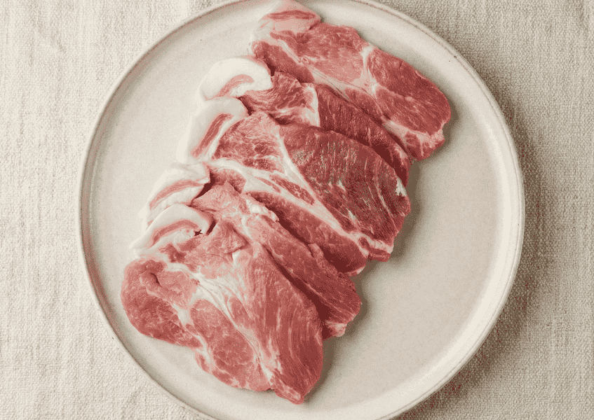Chọn thịt vai heomỡ xen kẽ, màu hồng tươi, độ đàn hồi tốt.