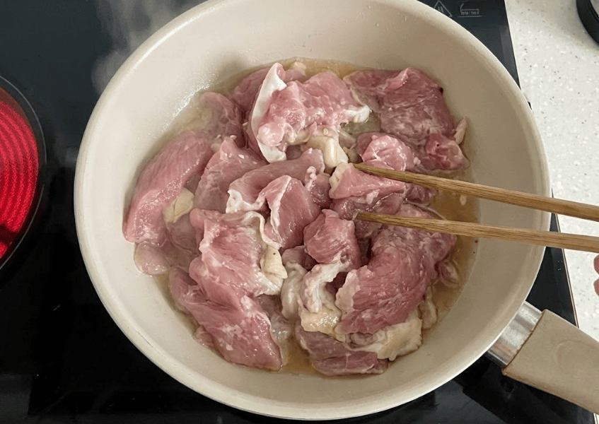 Chọn thịt vai heo có chút mỡ xen kẽ để món xào thơm và không bị khô.