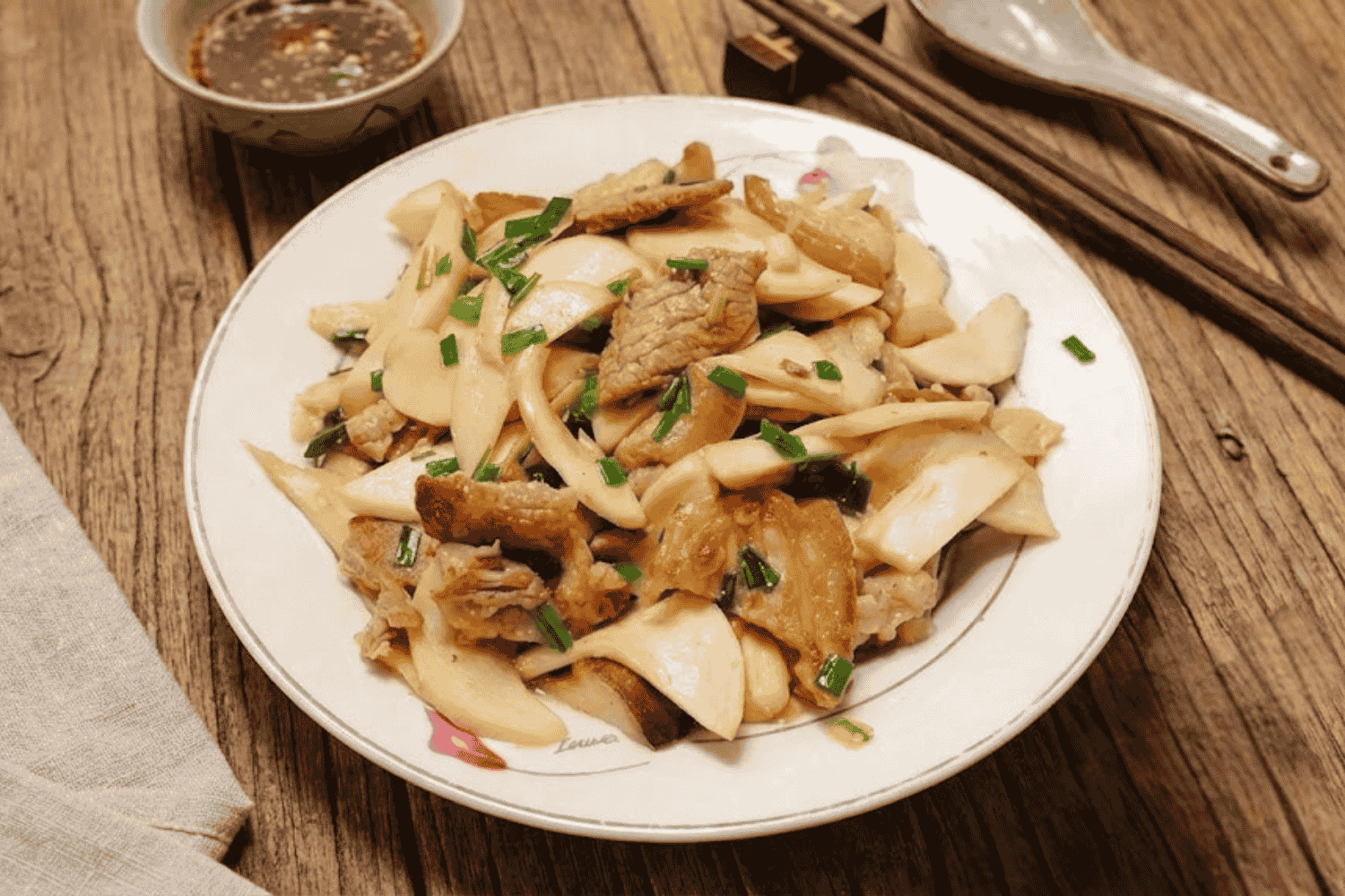 Thịt vai xào nấm đùi gà – món xào dinh dưỡng, thơm ngọt