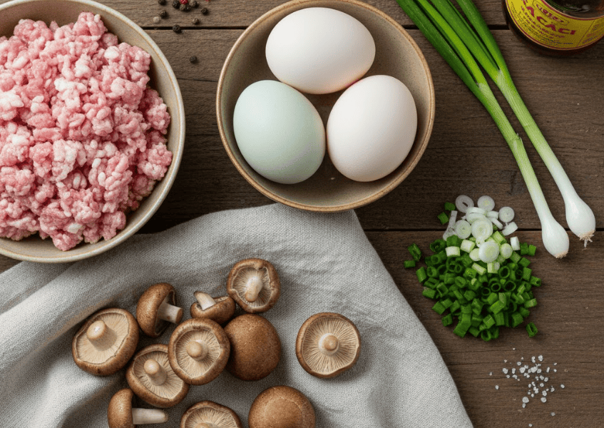 Để có món Trứng Hấp Thịt Nấm Rơm ngon miệng và hấp dẫn, việc chọn lựa nguyên liệu tươi mới là rất quan trọng: