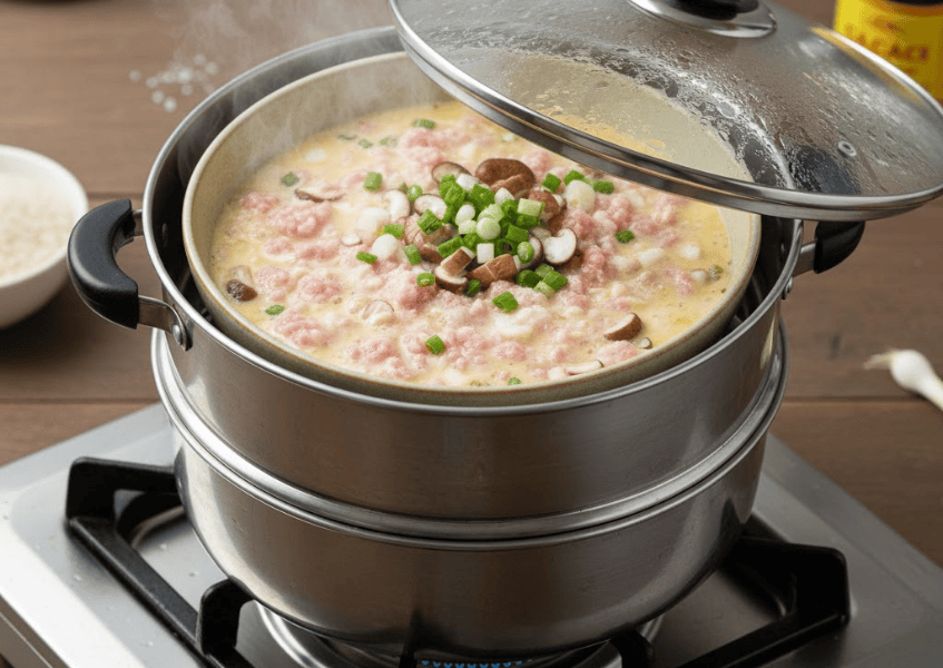 - Cách chế biến: Phương pháp hấp cách thủy giúp món ăn giữ được độ ẩm, mềm mịn và đảm bảo dinh dưỡng tối đa. Thịt và nấm được trộn đều với trứng và gia vị trước khi hấp.