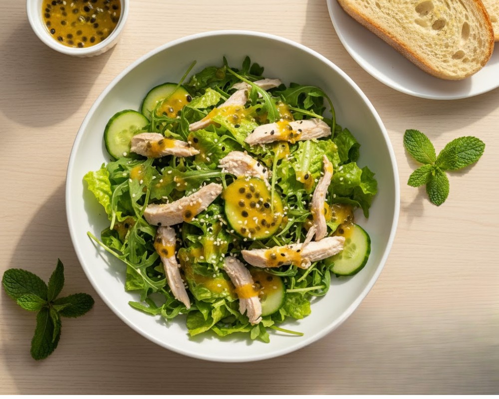 - Thêm sốt chanh dây và hạt mè, trộn đều.