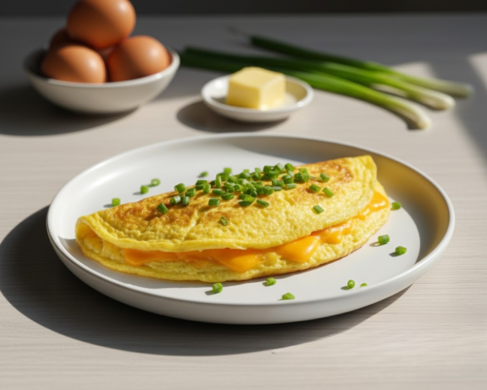 - Khi trứng gần chín, đặt phô mai và cuộn trứng lại.
