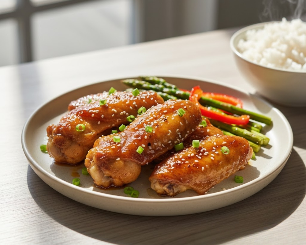 - Ướp cánh gà với mật ong, nước tương, tỏi, muối, tiêu 15 phút.