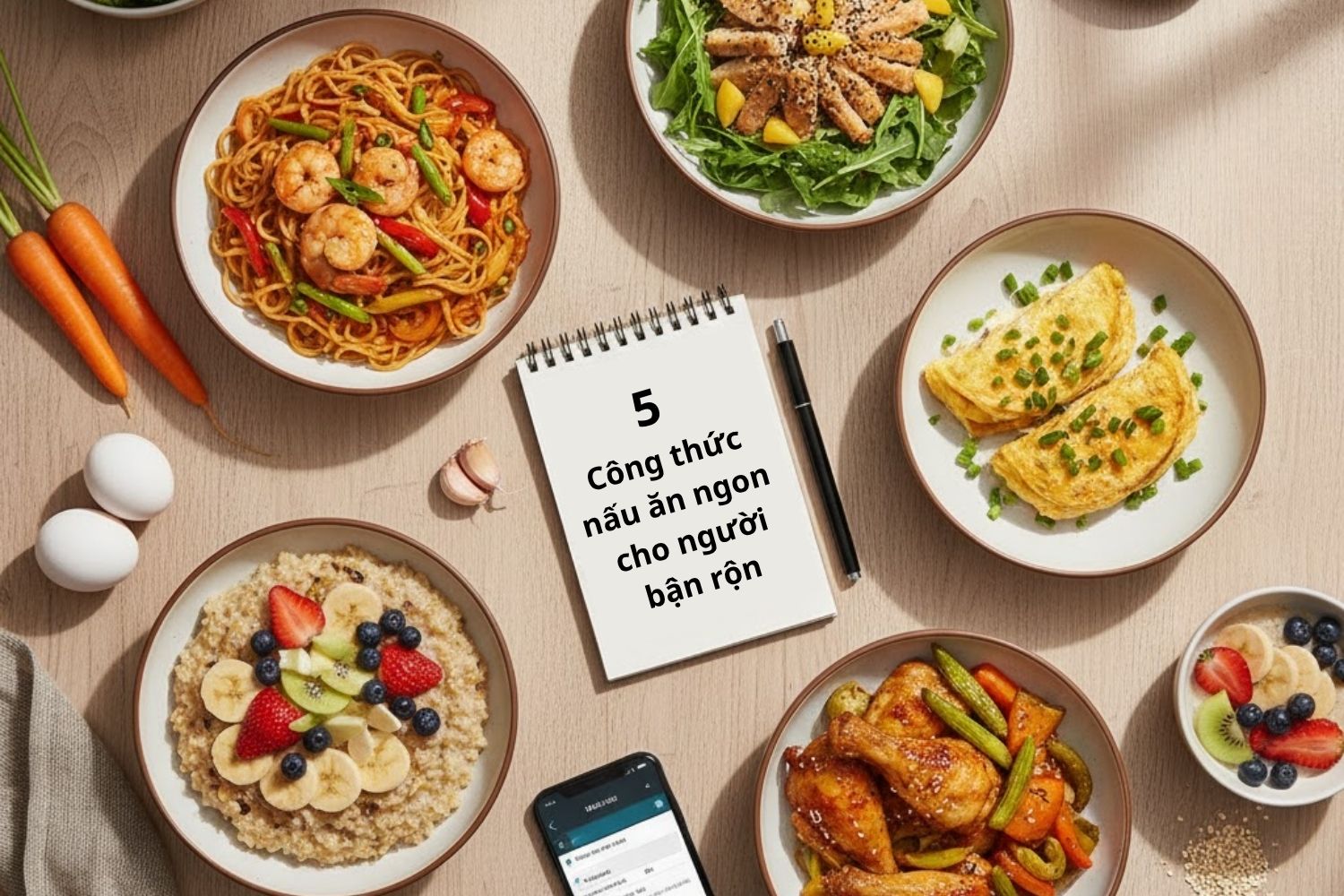 Trong nhịp sống hối hả, không phải ai cũng có nhiều thời gian nấu nướng. Tuy nhiên, những công thức nấu ăn nhanh gọn, dễ làm vẫn giúp bạn có món ăn cho người bận rộn. Đảm bảo đầy đủ dinh dưỡng và ngon miệng. Dưới đây là 5 công thức nấu ăn vừa nhanh vừa ngon, phù hợp với lịch trình bận rộn, từ bữa sáng tiện lợi, bữa trưa nhanh gọn đến bữa tối nhanh.