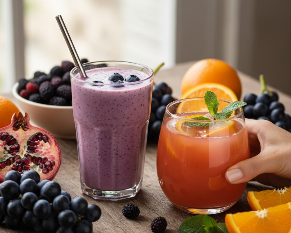 Sinh tố và nước ép giúp bạn dễ kết hợp nhiều loại quả cùng lúc. Một số gợi ý đơn giản: