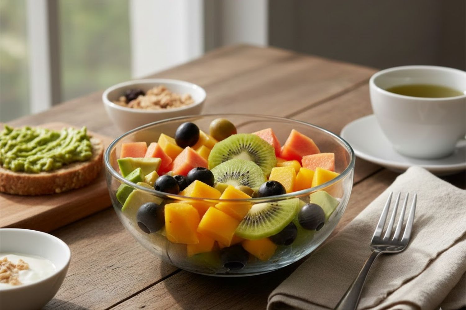Bạn không cần ăn đủ cả sáu loại trái cây trong một ngày. Hãy luân phiên từng loại trong tuần và kết hợp cùng rau xanh, ngũ cốc nguyên hạt và nguồn đạm chất lượng để cơ thể hấp thu trọn vẹn dưỡng chất.