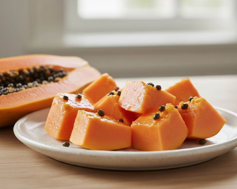 Đu đủ chứa vitamin, khoáng chất và enzyme papain có lợi cho hệ tiêu hóa. Khi đường ruột hoạt động trơn tru, cơ thể hấp thu dưỡng chất tốt hơn. Đây là nền tảng quan trọng để hormone vận hành ổn định.
