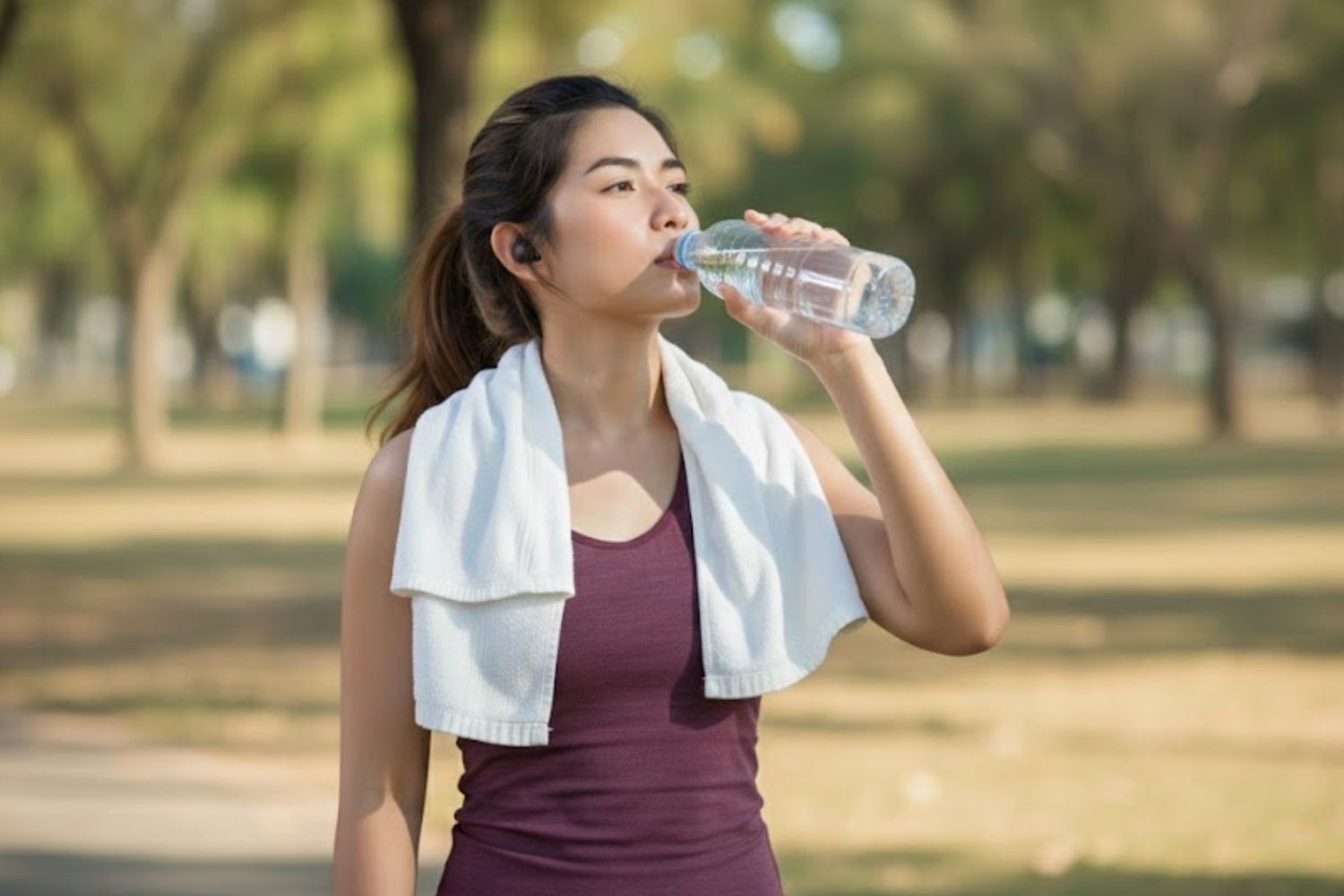 Mẹo nhỏ: Uống nước trước, trong và sau khi tập. Với bài tập kéo dài hơn 60 phút, nên bổ sung thêm nước điện giải hoặc nước dừa để bù khoáng.