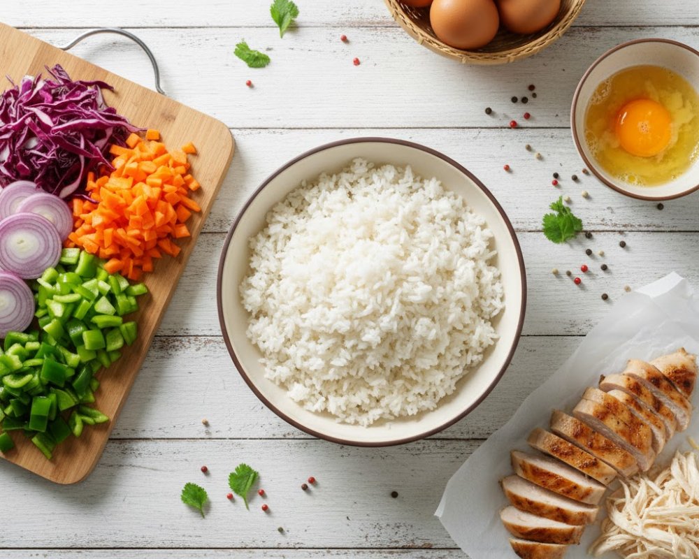 - Kết hợp nguyên liệu theo nhóm: tinh bột – đạm – rau để món đầy đủ dinh dưỡng.
