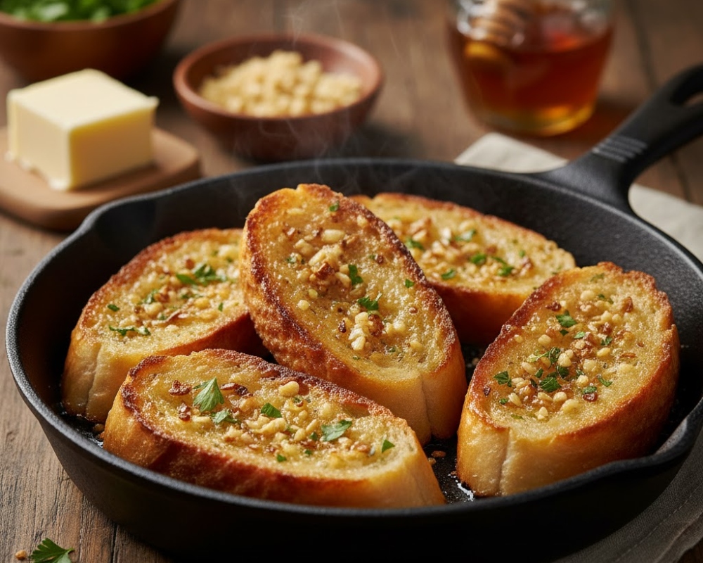 - Bữa sáng: Bánh mì bơ tỏi áp chảo