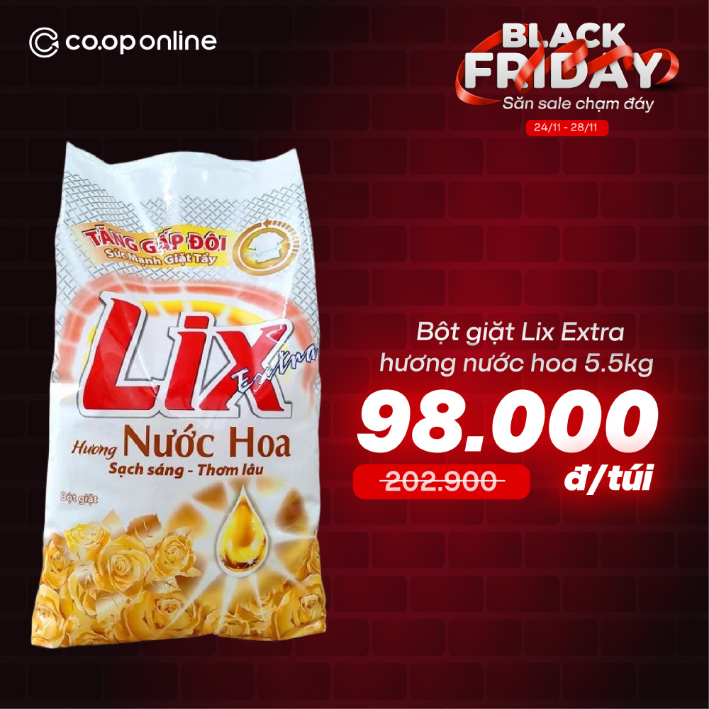 • Bột giặt Lix Extra hương nước hoa 5.5kg, giảm 50%, chỉ còn 98.000đ/túi (giá gốc 202.900đ/túi)
