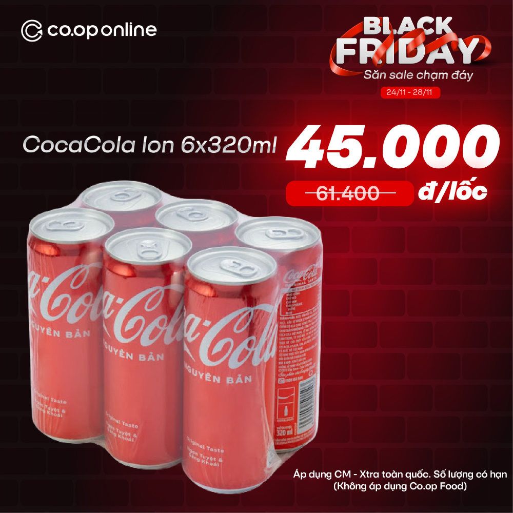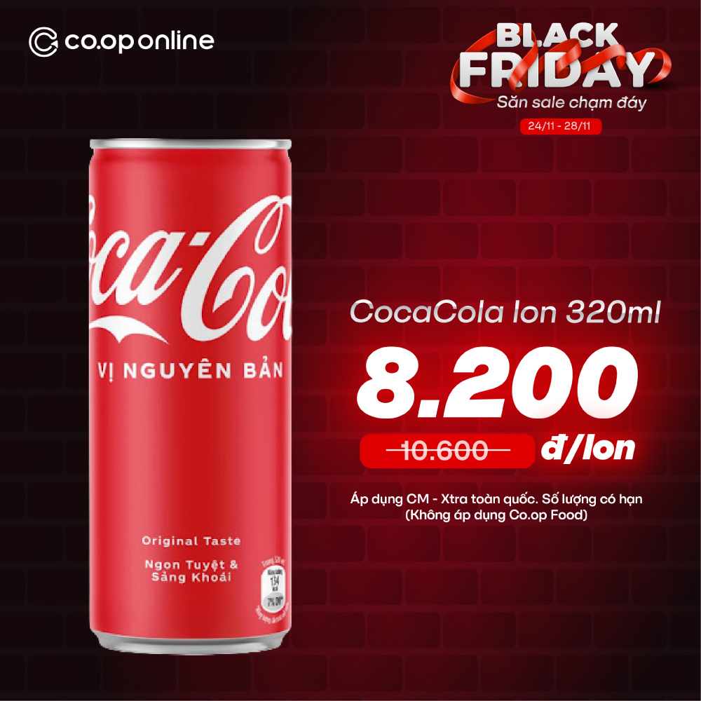 • Nước giải khát Coca Cola lon 320ml, chỉ còn 8.200đ/lon (giá gốc 10.600 đ/lon)