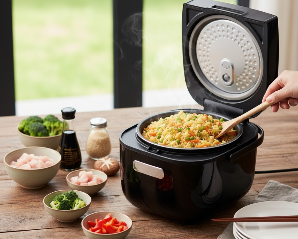 - Chọn nồi cơm điện đa năng (có chế độ xào/nấu nhanh).