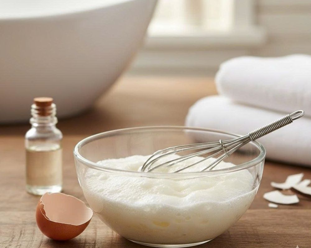 Lòng trắng trứng chứa protein giúp da trông săn chắc hơn. Khi kết hợp với dầu dừa, hỗn hợp có thể hỗ trợ phục hồi bề mặt da khô, mệt mỏi.