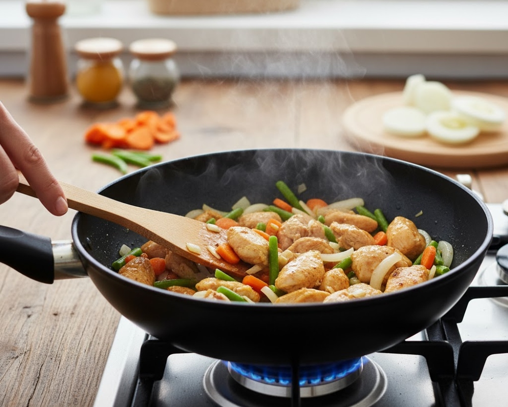 • Dinh dưỡng cân đối: Kết hợp thịt, cá, gà hoặc rau củ trong cùng một chảo.
