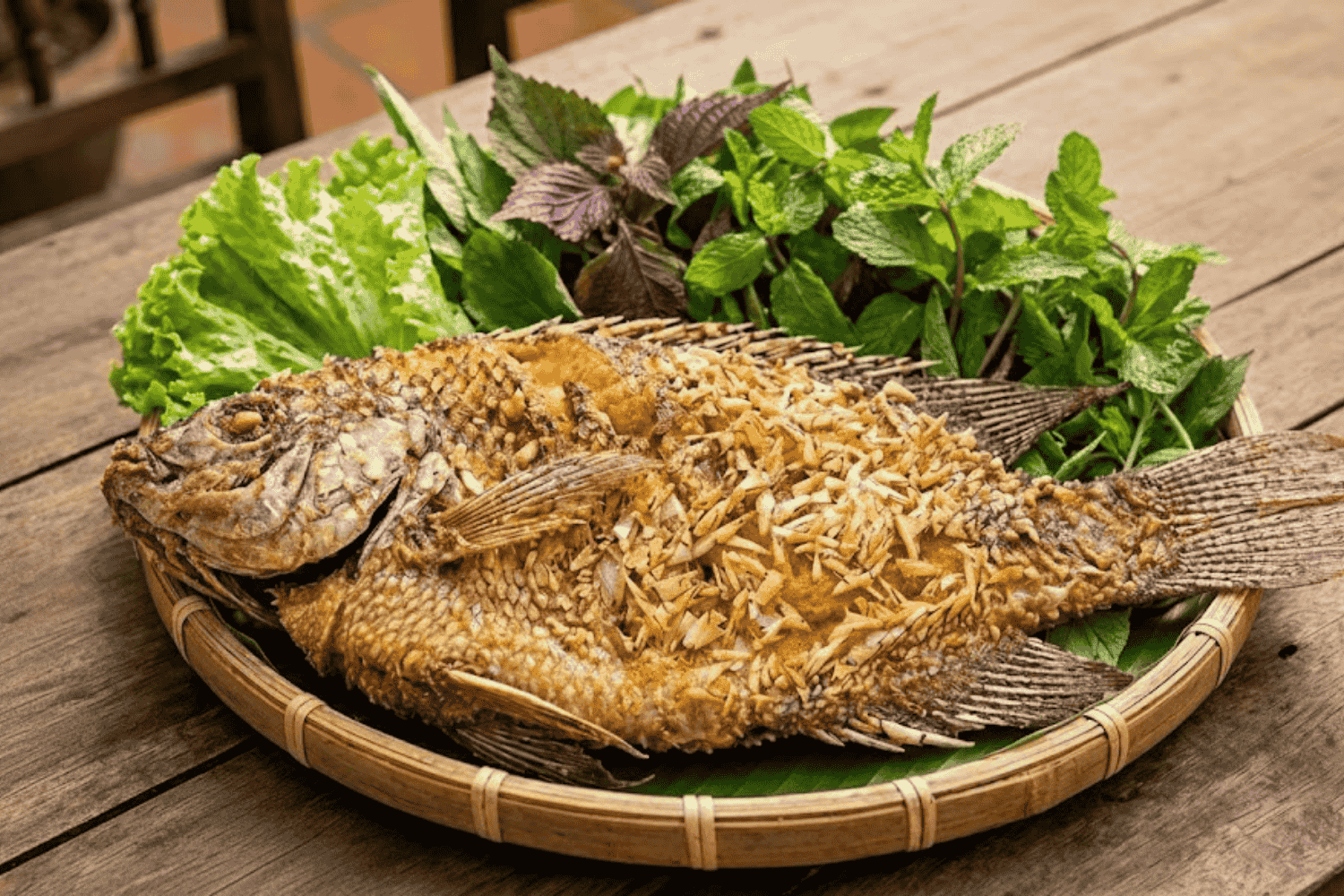 - Chiên 20–30 phút đến khi cá vàng giòn đều.