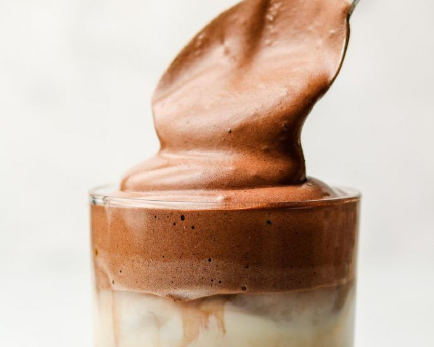 - Thêm kem tươi hoặc bọt sữa lên trên, rắc bột cacao hoặc chocolate bào để tăng hương vị.