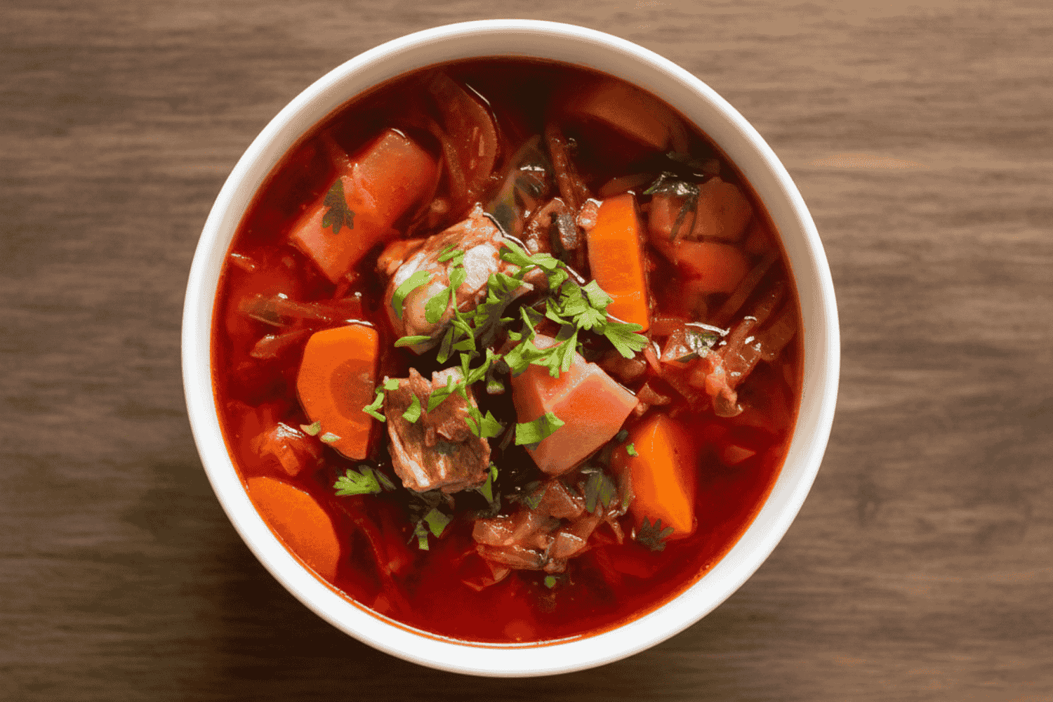 Hương vị: Ngọt thanh, nhẹ dịu từ củ dền và xương ống heo.