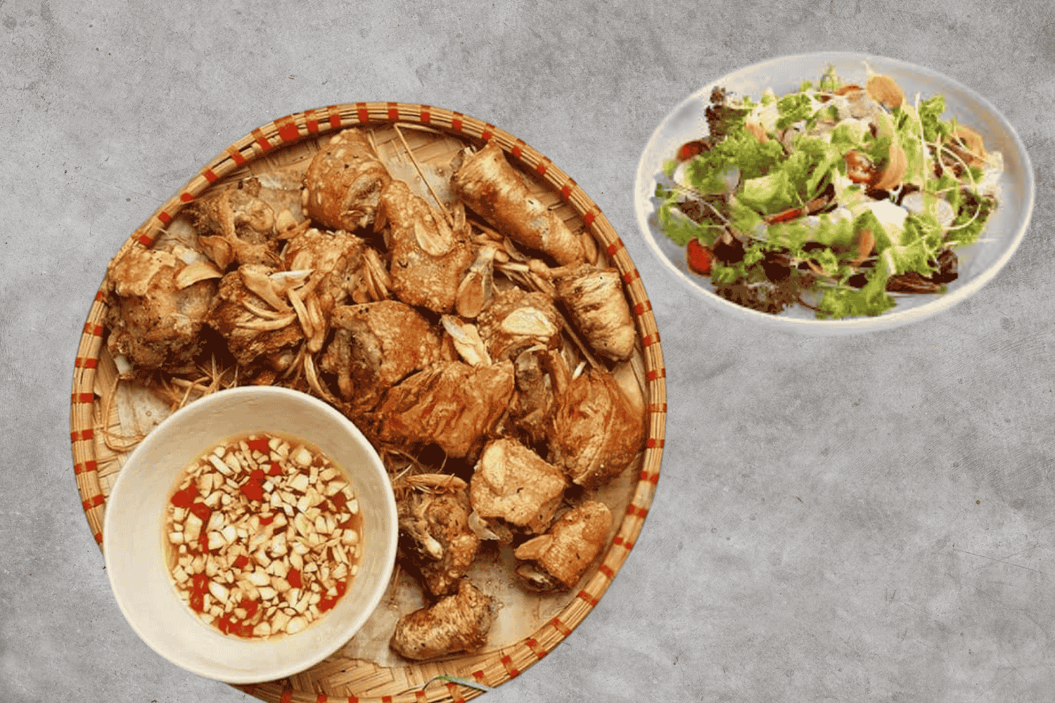 Hương vị: Giòn rụm bên ngoài, mềm béo bên trong, thấm vị gia vị tỏi, ớt, tiêu.