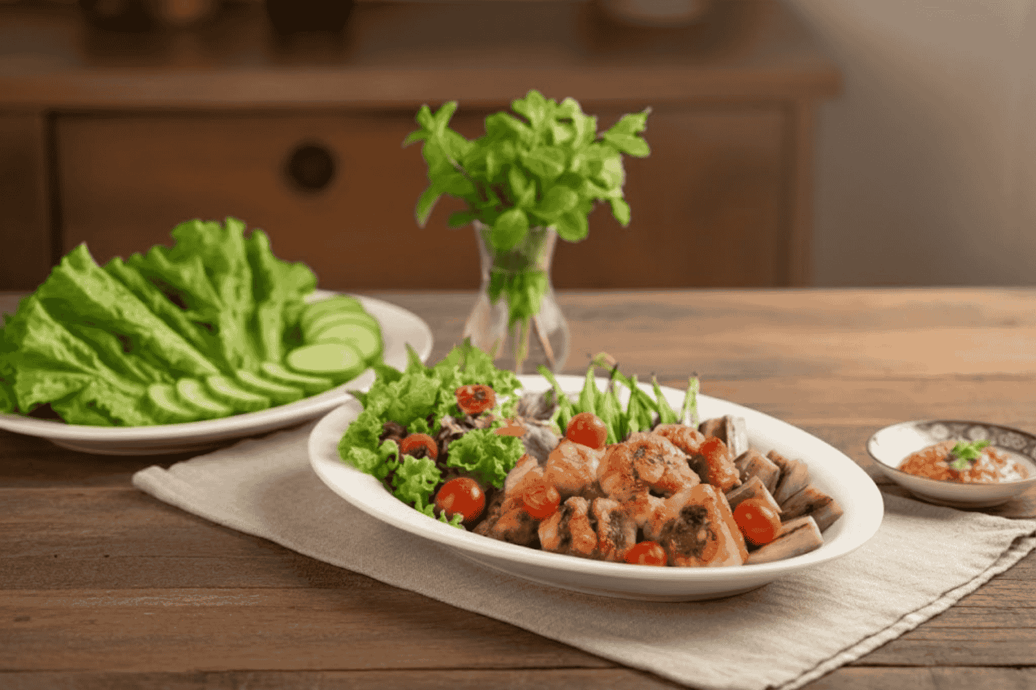 - Ăn kèm rau sống, dưa leo, hoặc cơm trắng.