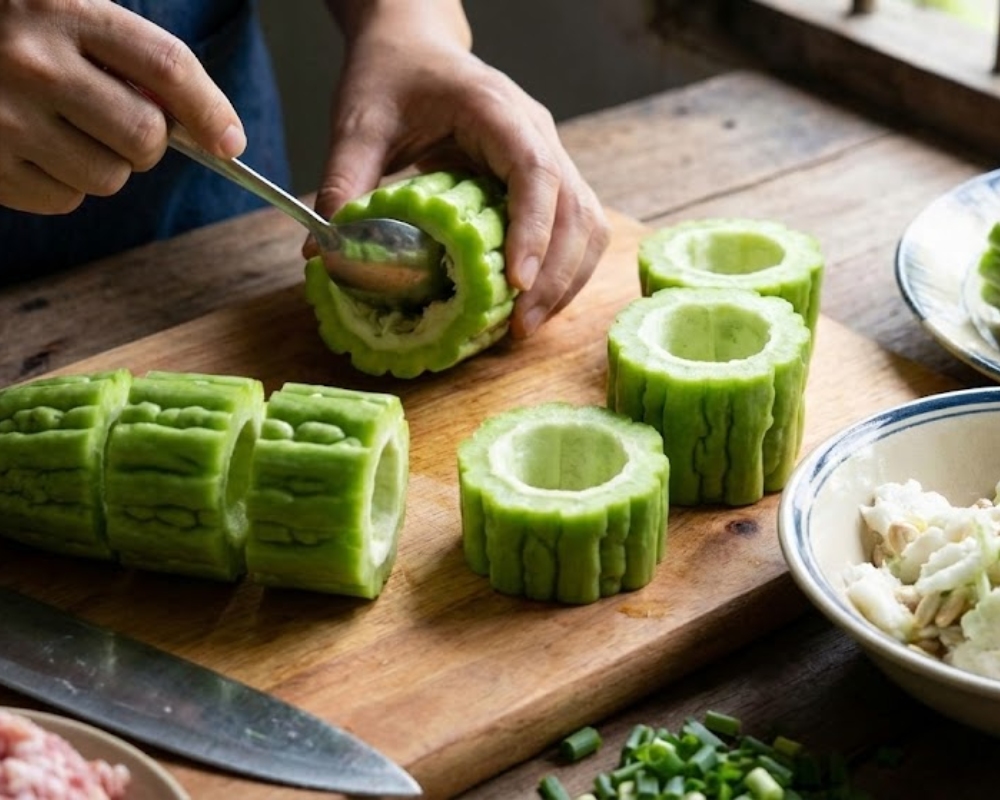 Khổ qua là nguyên liệu quen thuộc trong mâm cơm Tết, đặc biệt với món canh khổ qua nhồi thịt mang ý nghĩa “khổ qua, sướng tới”. Tuy nhiên, vị đắng đặc trưng của khổ qua lại khiến nhiều người e ngại, nhất là trẻ nhỏ và người lớn tuổi. Trên thực tế, nếu biết cách cạo màng trắng đúng kỹ thuật, khổ qua có thể bớt đắng đến 80% mà vẫn giữ được độ giòn và vị thanh tự nhiên.
