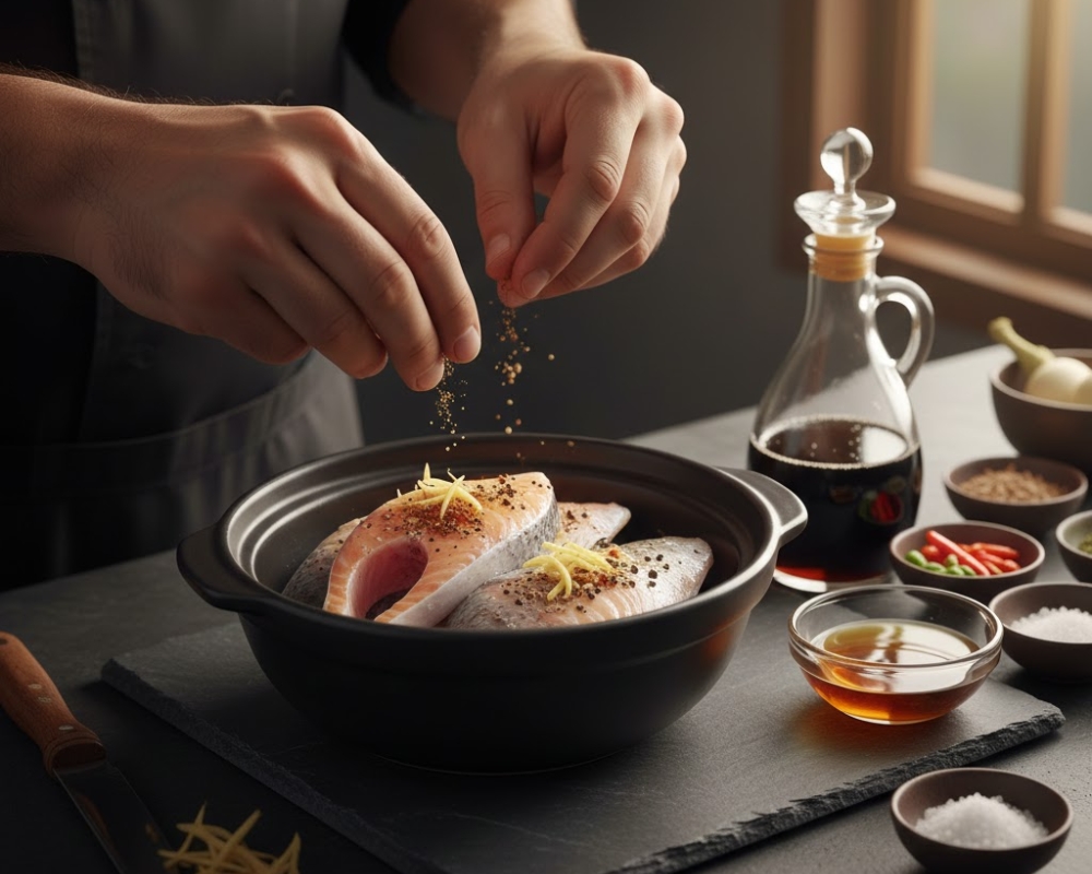 - Ướp cá 15–20 phút trước khi kho với nước mắm, đường, tiêu, tỏi, hành tím.