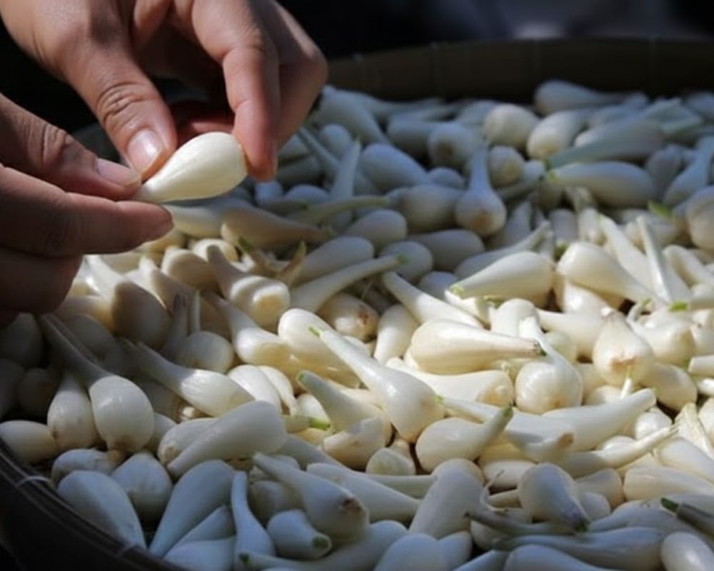 Mẹo nhanh: bóp nhẹ thấy củ chắc, không bọng là kiệu ngon.