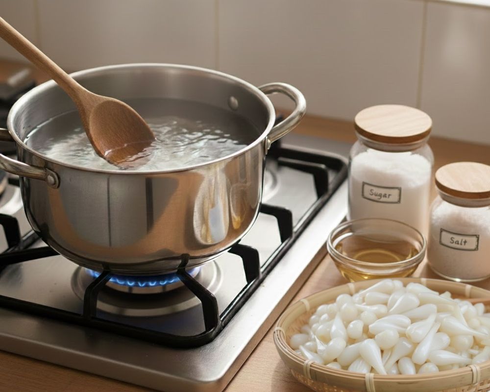 Pha nước ngâm chua ngọt để kiệu giòn lâu