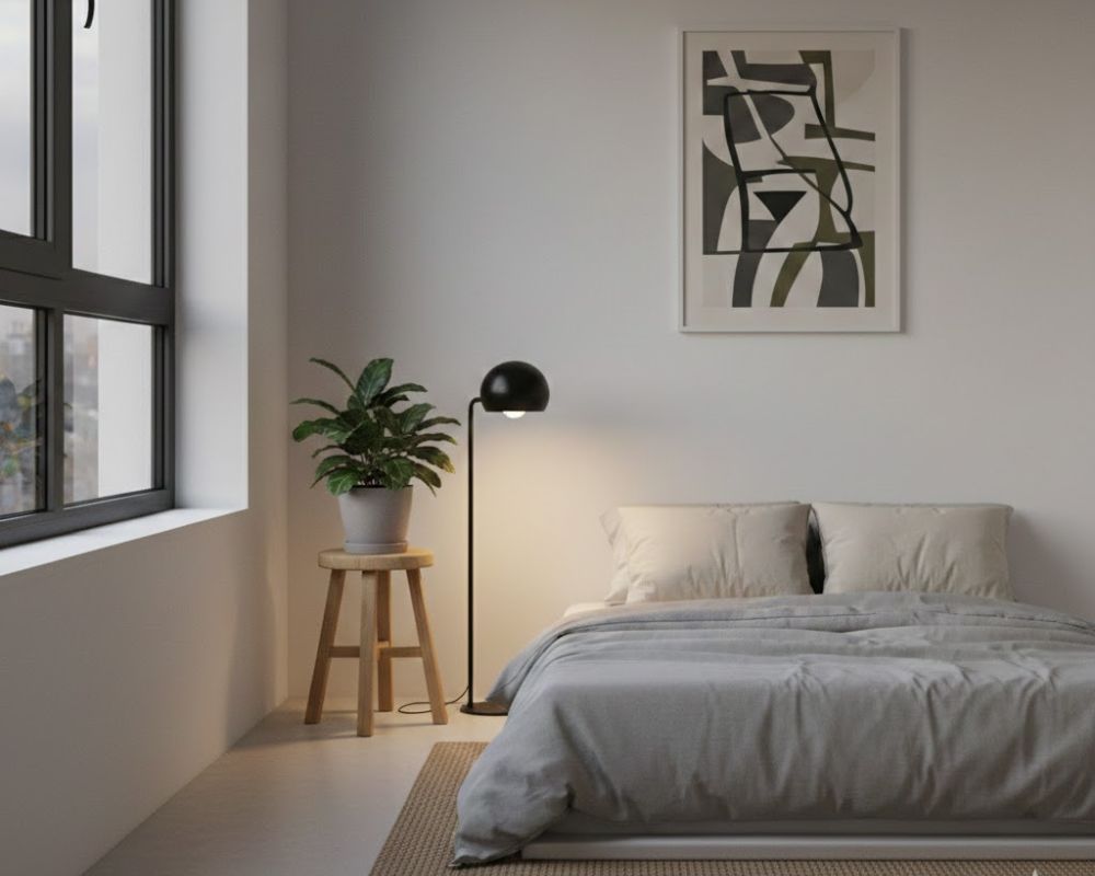 Tối giản không có nghĩa là nhà phải “nhạt”. Bạn có thể thêm một vài điểm nhấn như chậu cây xanh, bức tranh treo tường, chiếc gối có họa tiết nhẹ hoặc kệ sách gọn gàng. Những điểm nhấn này đủ để tạo cảm giác sống động, nhưng vẫn giữ trọn tinh thần của lối sống tối giản.