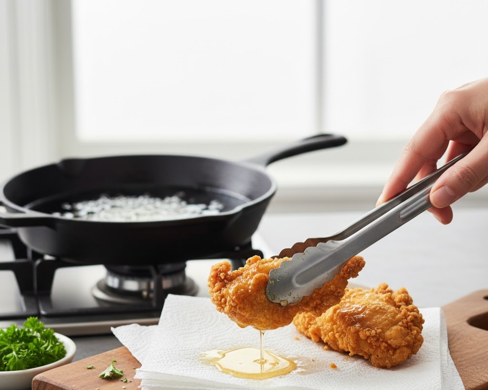 4. Thấm dầu mỡ thừa ở món chiên rán bằng giấy ăn