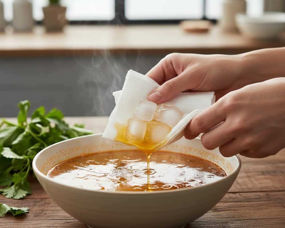 5. Giấy ăn hút váng dầu trong canh, súp — cực nhanh và sạch