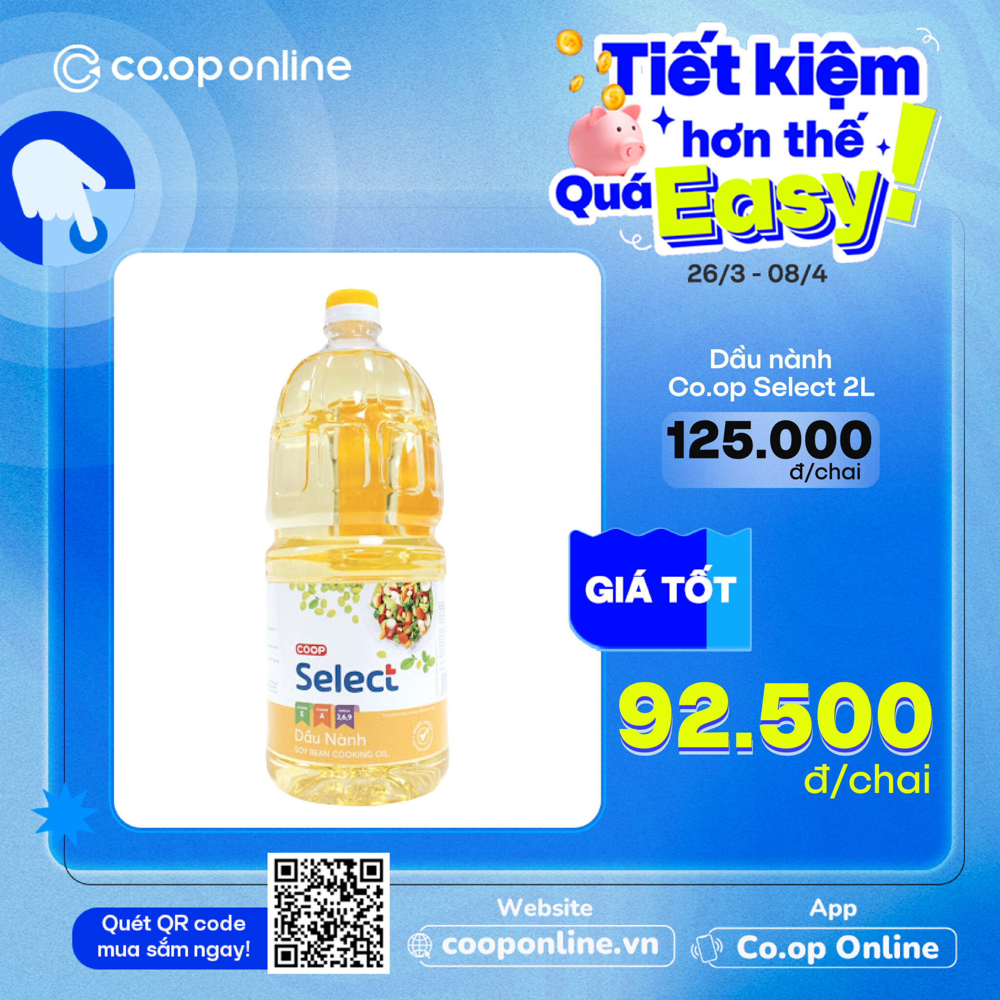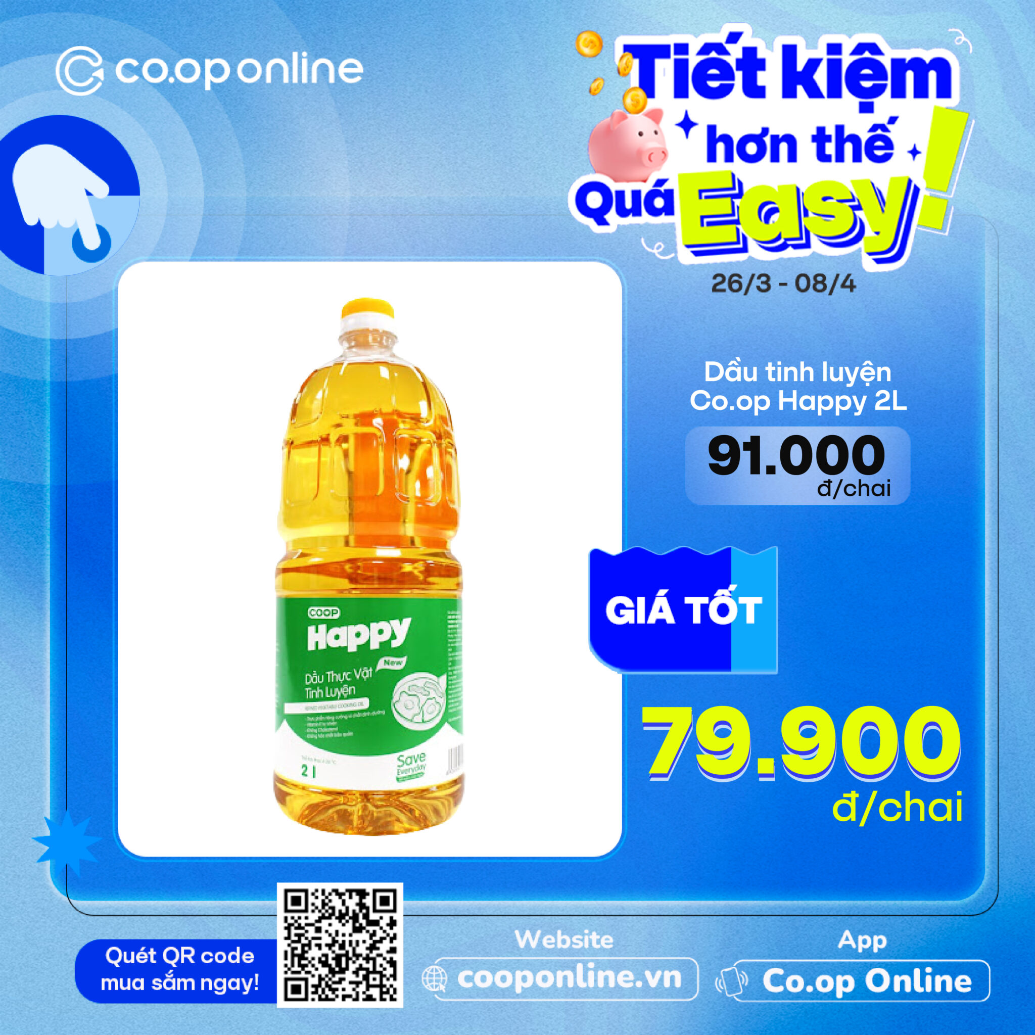 - Dầu tinh luyện Co.op Happy 2L: Trợ thủ cho món chiên giòn tan, xào đậm đà, giá tốt chỉ 79,900đ/chai (giá thường 80.500đ/chai)