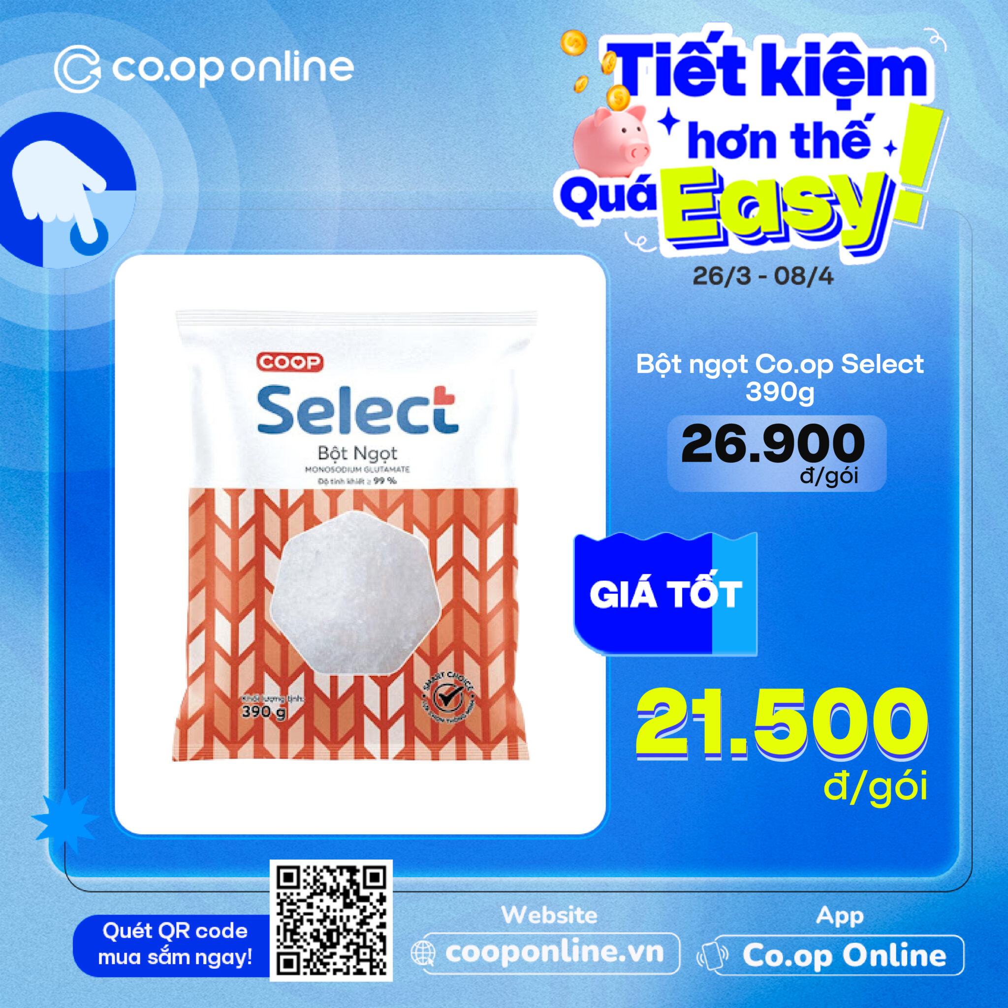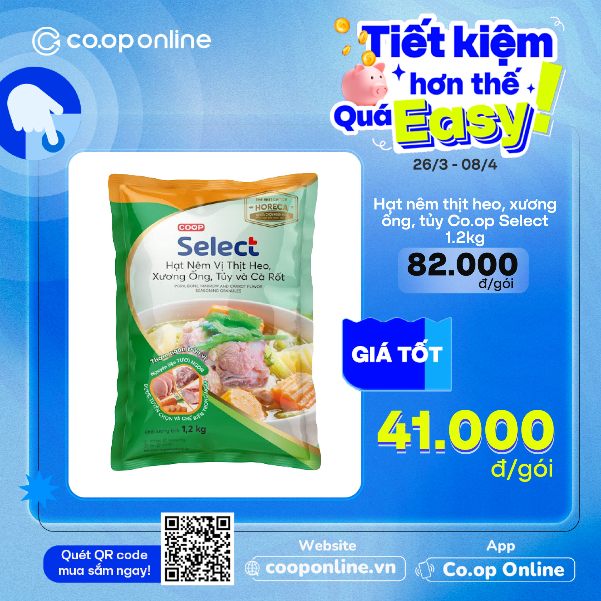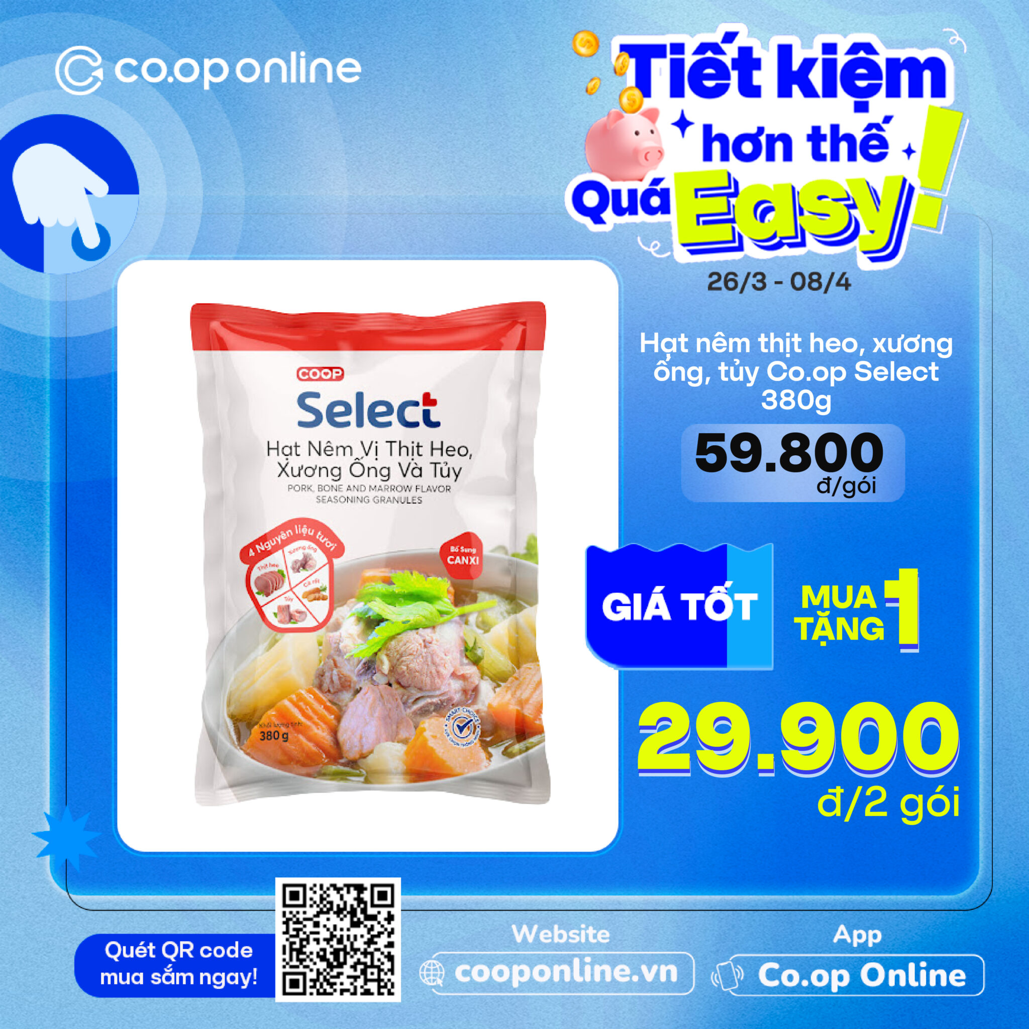 - Hạt nêm Co.op Select thịt heo xương ống tủy 380g & Nui chữ C Co.op Select 350g: Bí kíp nấu nhanh thần tốc mà vị vẫn chuẩn cơm mẹ nấu giá tốt nhất lần lượt là 29.900đ/túi và 19.500đ/túi… và nhiều deal siêu tiết kiệm khác