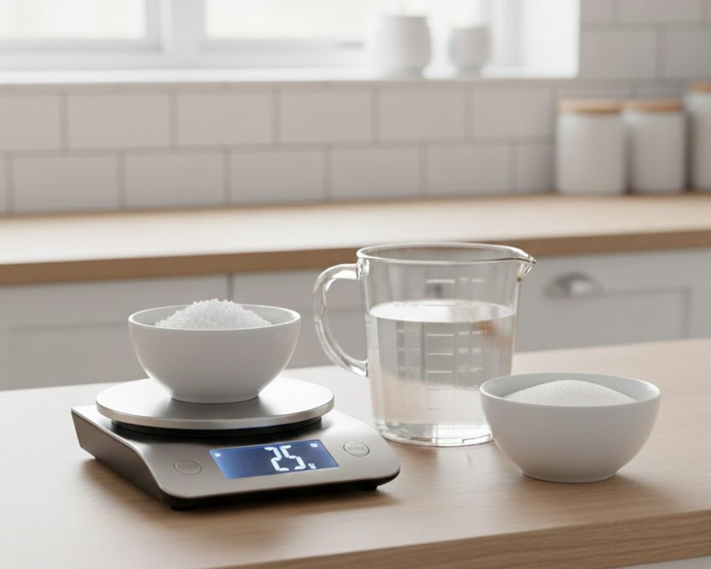- 25–30 g muối hạt (tương đương 2.5–3%)