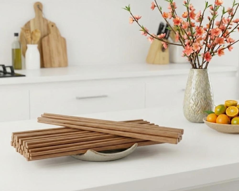 Đũa là vật dụng gắn liền với bữa cơm gia đình. Đũa cũ, cong vênh hoặc không đồng bộ thường bị xem là điềm không tốt, dễ ảnh hưởng đến hòa khí gia đình trong năm mới.
